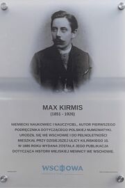 | 10:27, 6 lis 2022 | Max Kirmis tablica pamiątkowa.jpg (plik) | 52 KB | 1 |